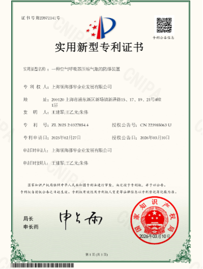 A patent for an explosion-proof device for SCBA cylinders, filed by WRLEADING GROUP AS, has recently